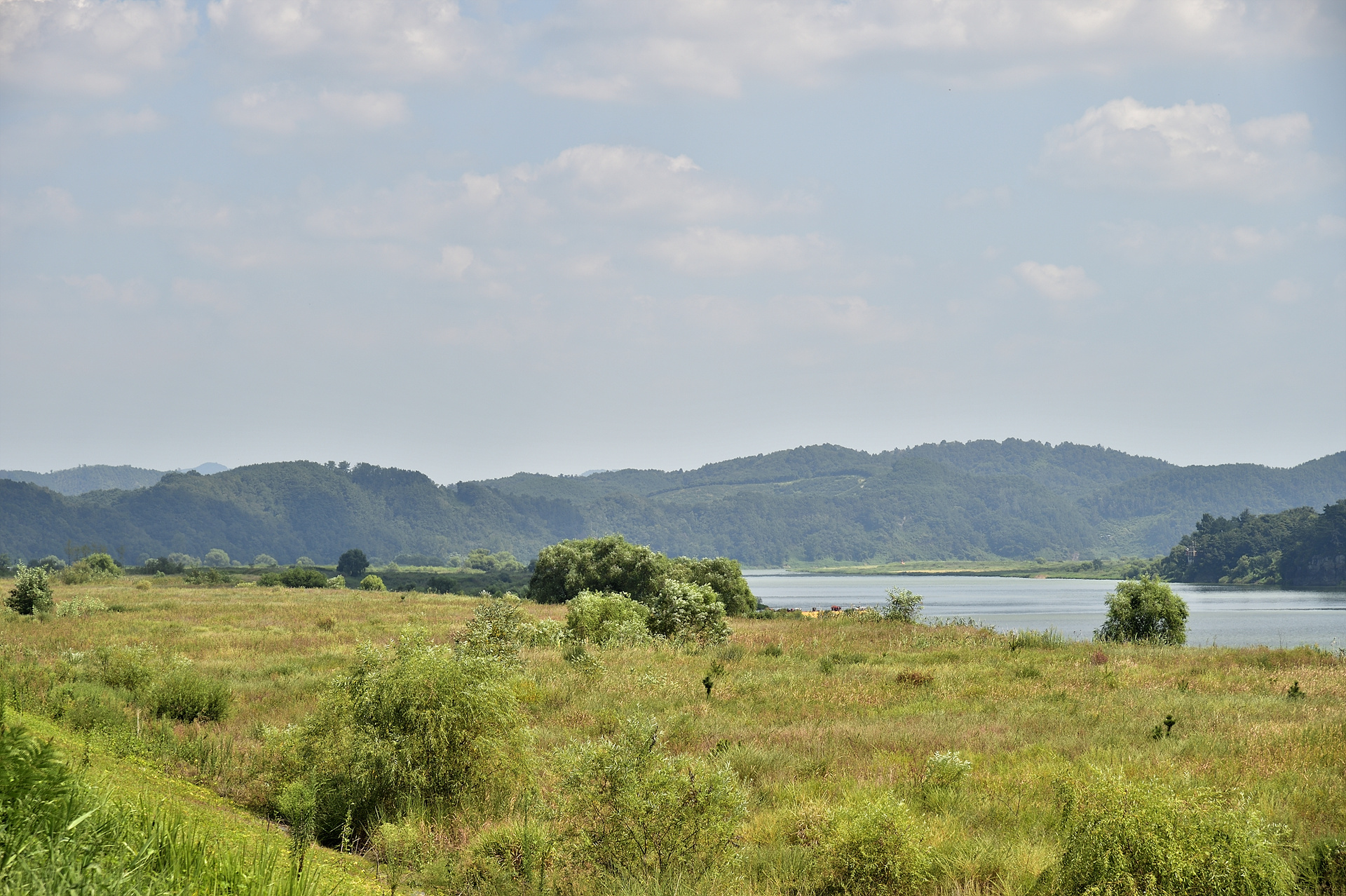 제방에 꽃길을 조성하고 있더군요