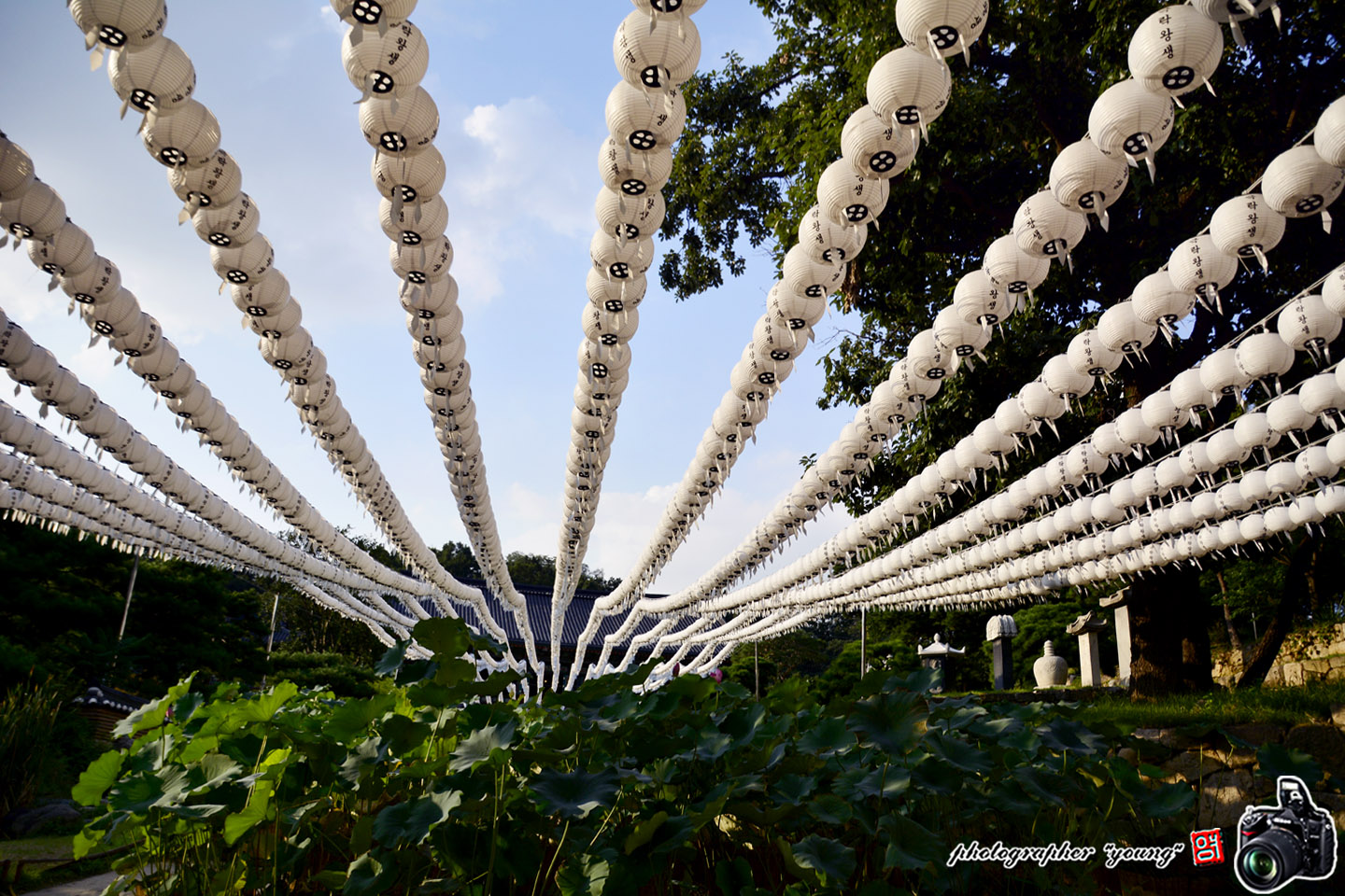 봉은사 입구와 안쪽 하얀 연등