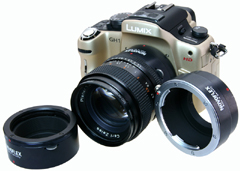 마이크로포서즈 규격을 채용하는 Olympus「E-P1」, 파나소닉「LUMIX DMC-GH1」 및「 DMC-G1」에 각 대응 렌즈를 장착할 수 있는 마운트 아답터.
