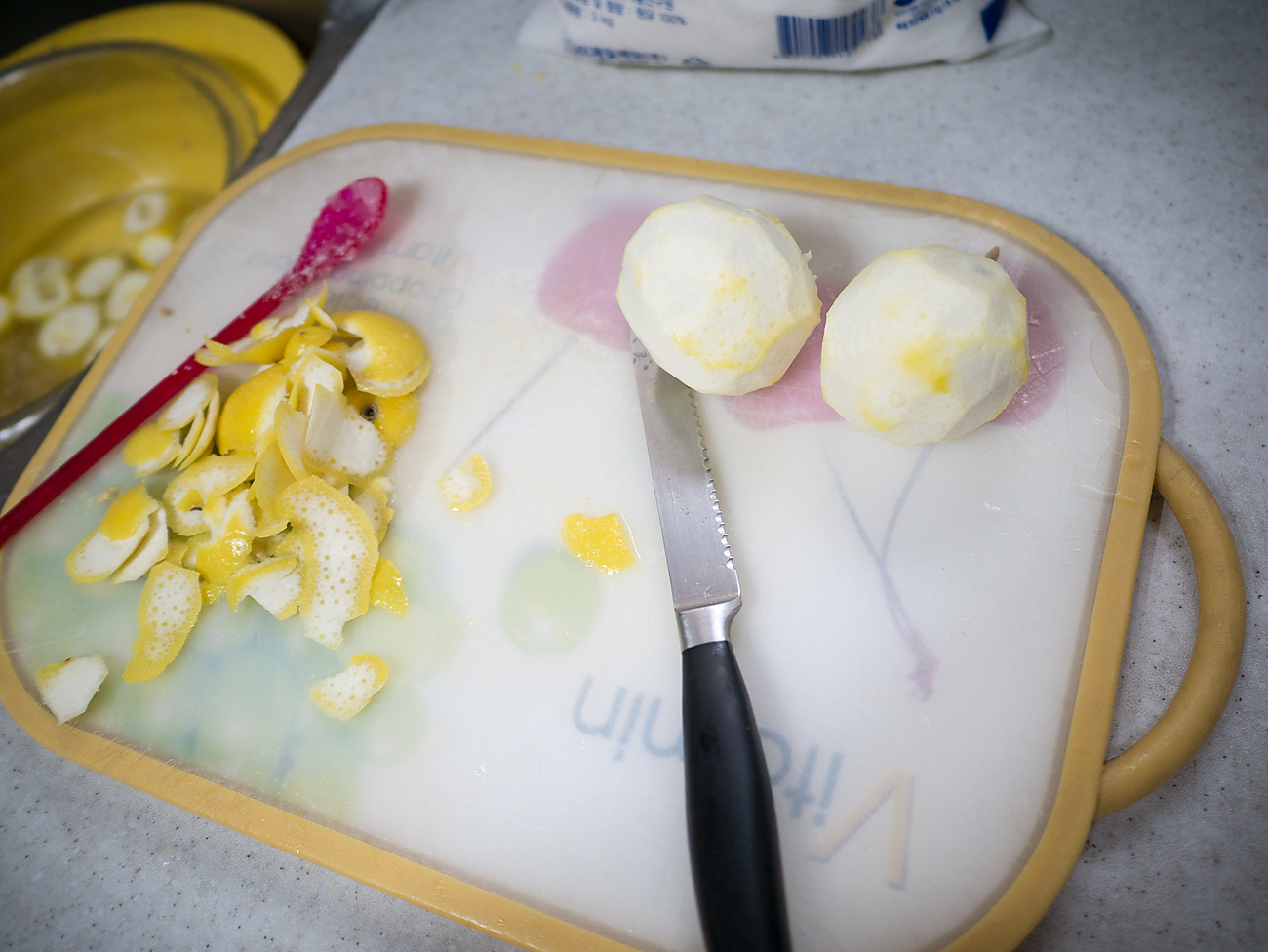 이번엔 저번하고 다르게.... 레몬 을 아주 얇게 썰어 봤습니다.