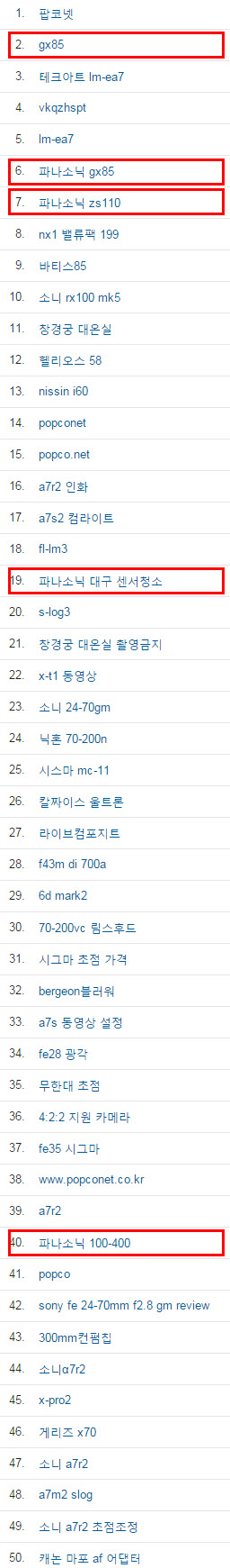파나소닉 관련 키워드가 팝코 전체 2위인 경우는 없었습니다.