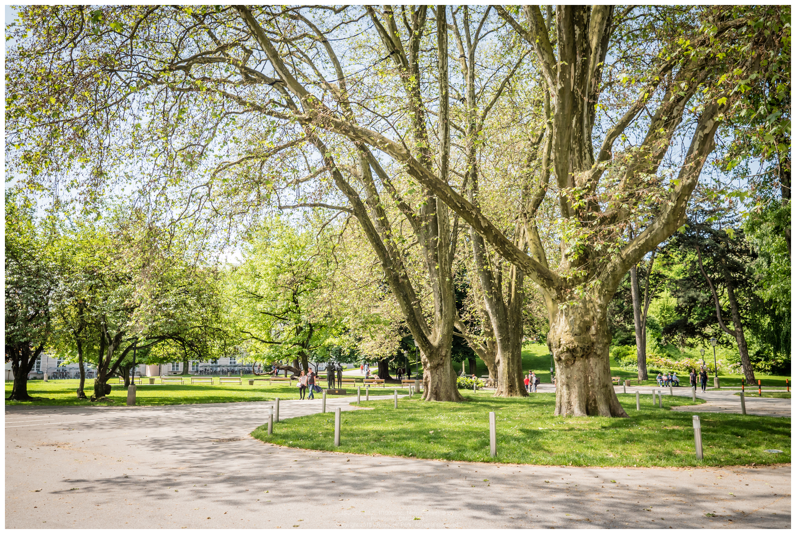 미라벨 정원을 가로질러 걸어갑니다.