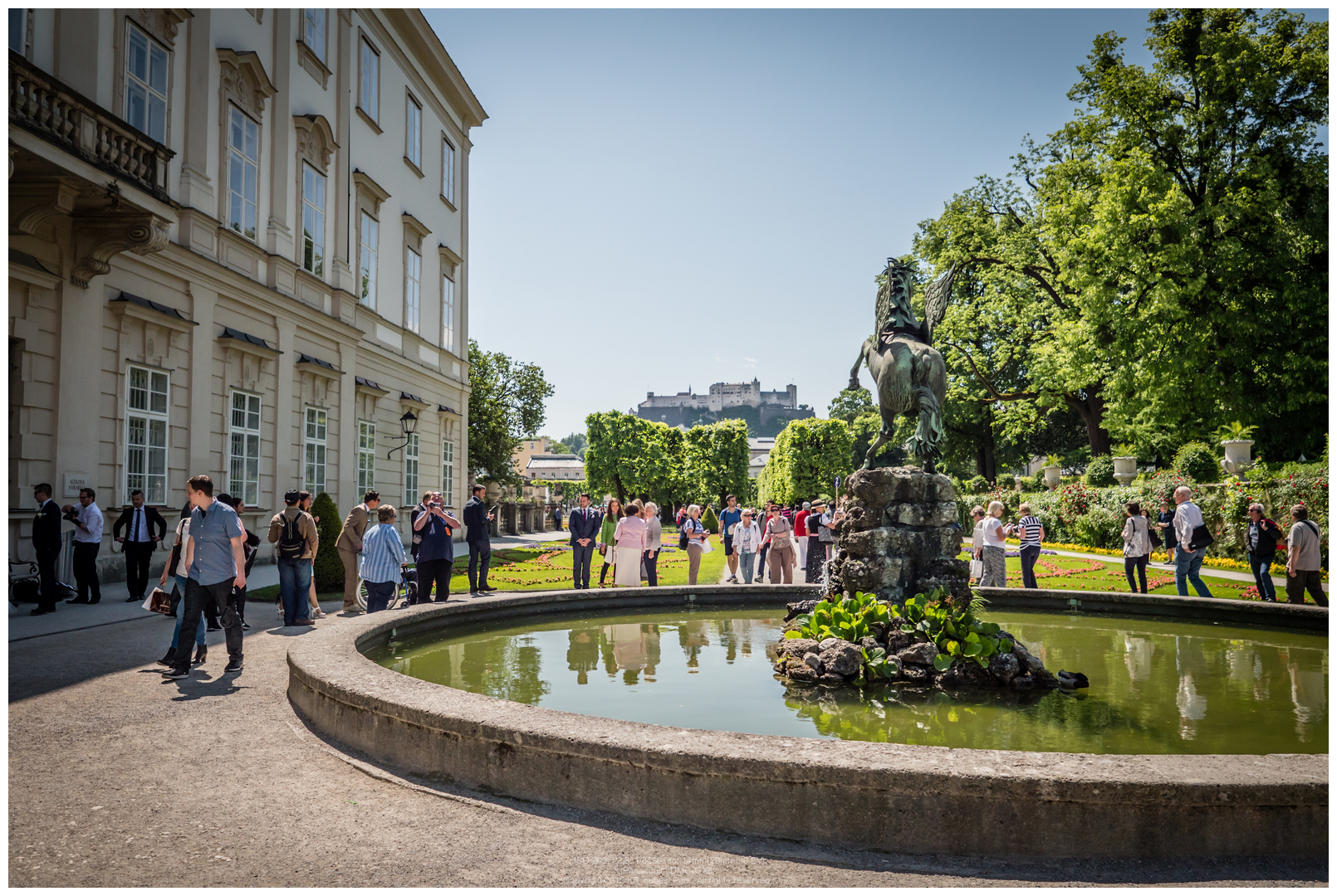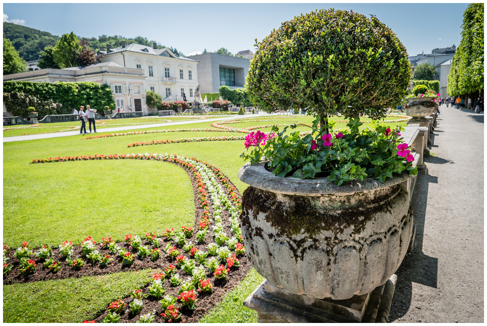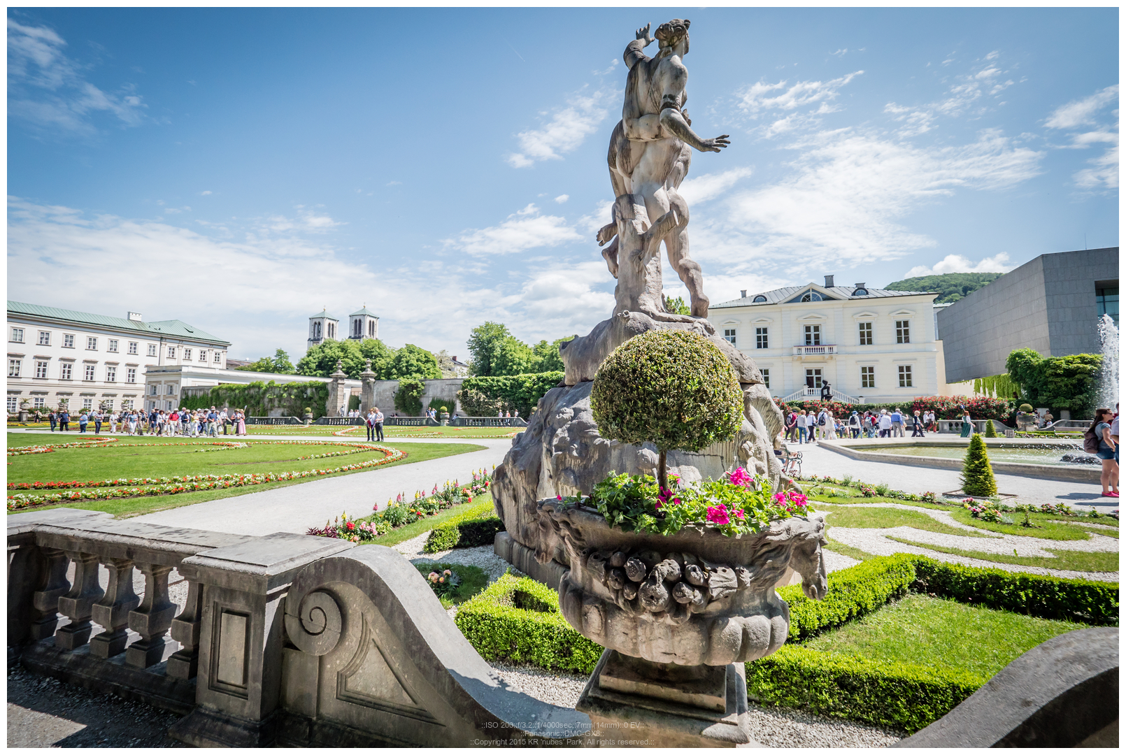 정원을 지나 오른쪽으로 쭉 들어오니 눈에 익은 풍경이 있습니다. 왼쪽 앞은 Mirabell궁전, 그 앞 전반이 Mirabell garden..