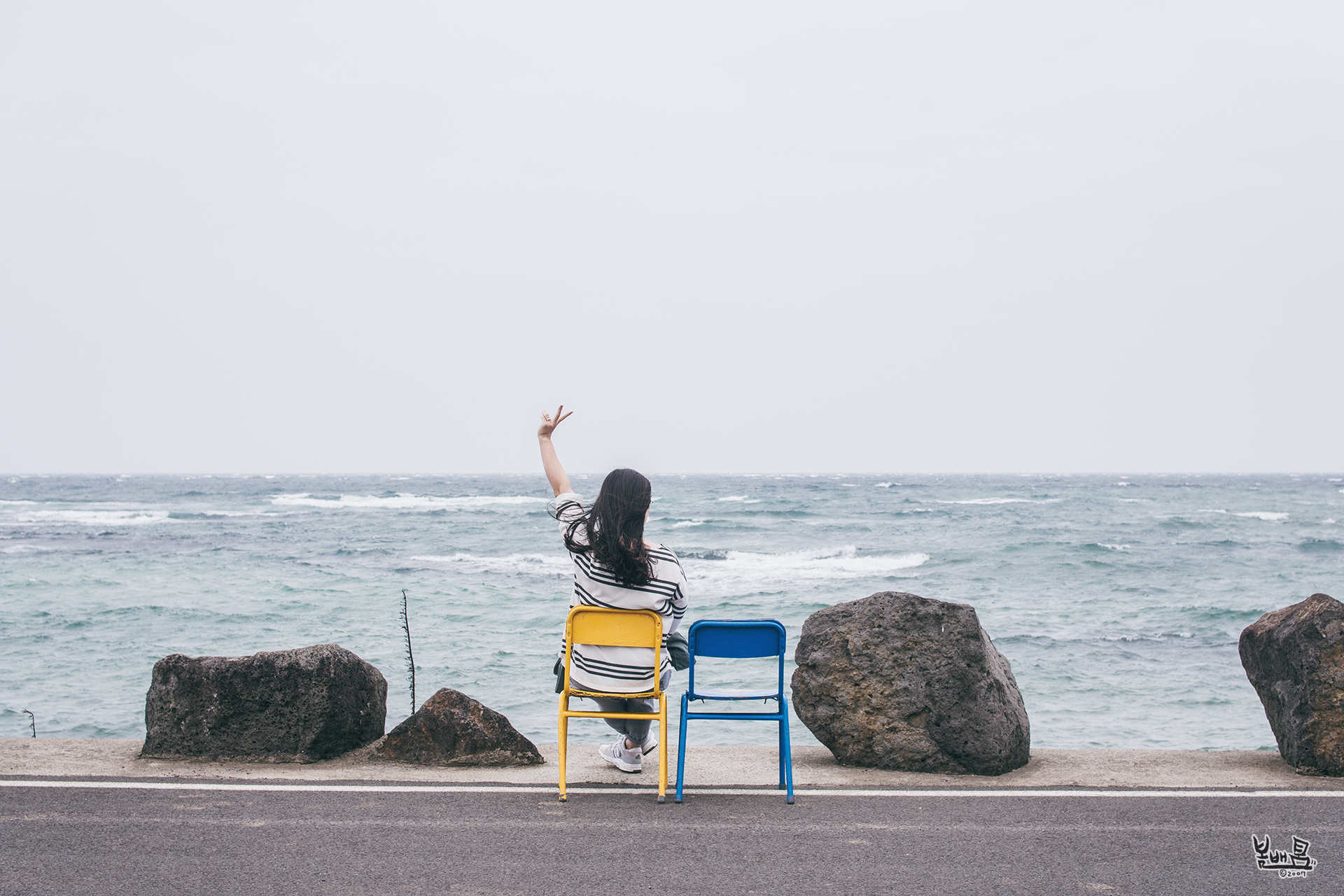 그래도 어렵사리 꼭 가보고팠던 월정리 해변에서 가족 사진 한 장은 남겼네요.