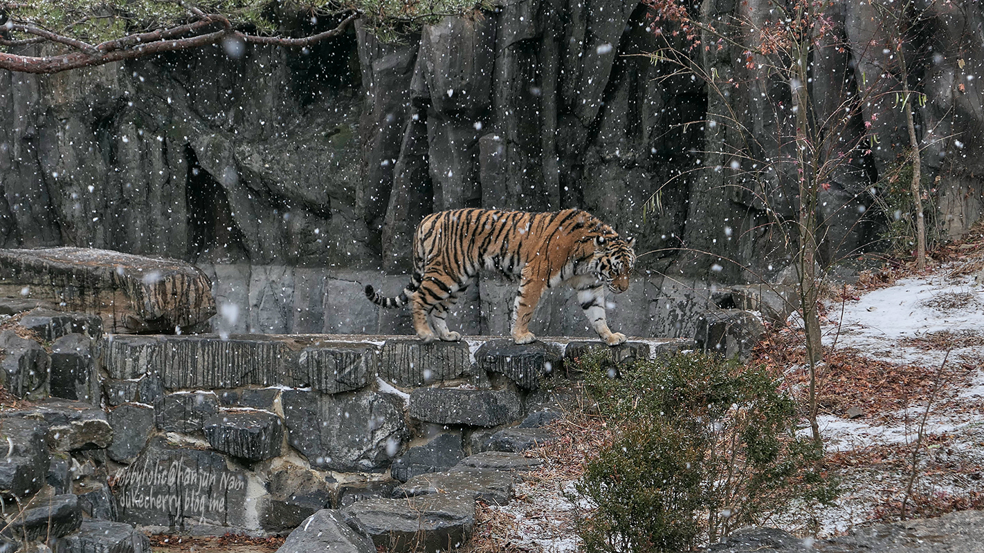 호랑이 사육사 사망사건이후인듯 싶은데,  투명유리창 (말이 투명...사람들의 손자욱이 난무하는..)으로  관람객과 호랑이 사이가