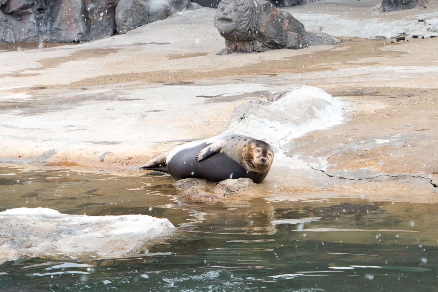 [LX10] 첫눈을 즐기는 물범의 즐거운 표정!!!! 웃는거 맞죠?