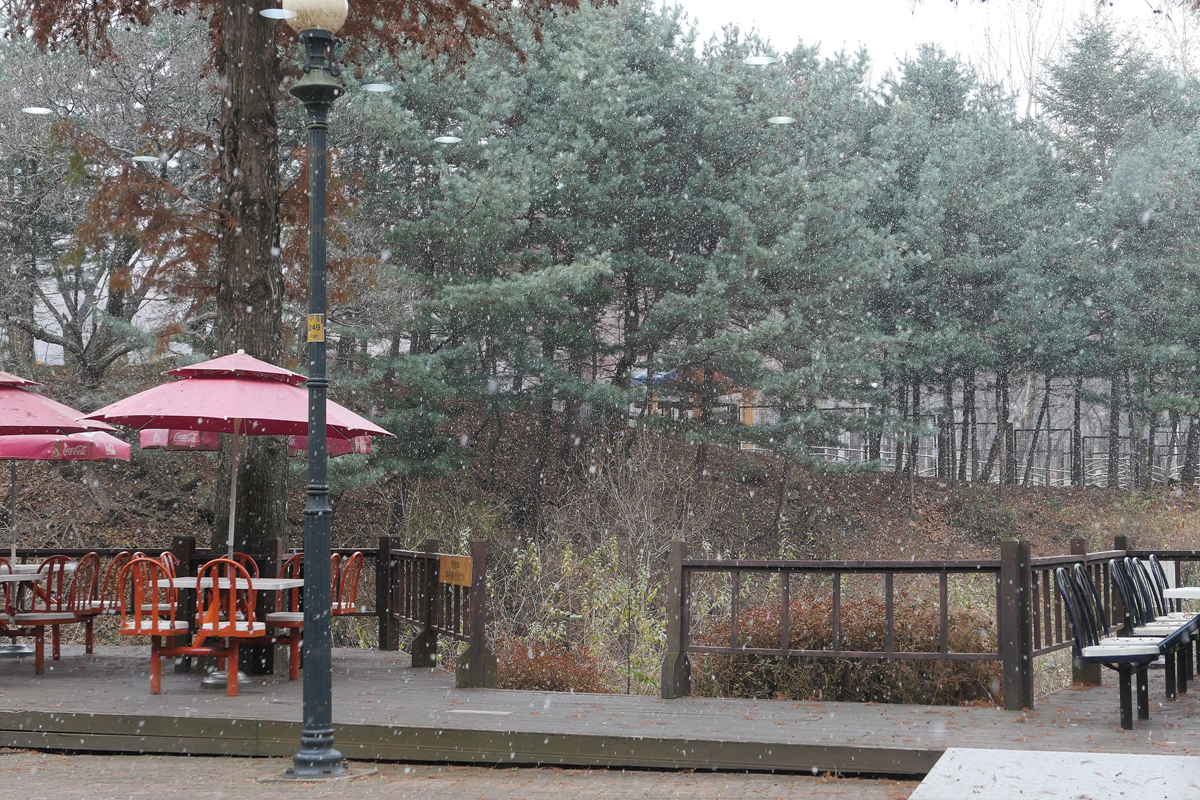 점심식사를 위해서 밖으로 나와보니 눈이 펑펑 옵니다.
