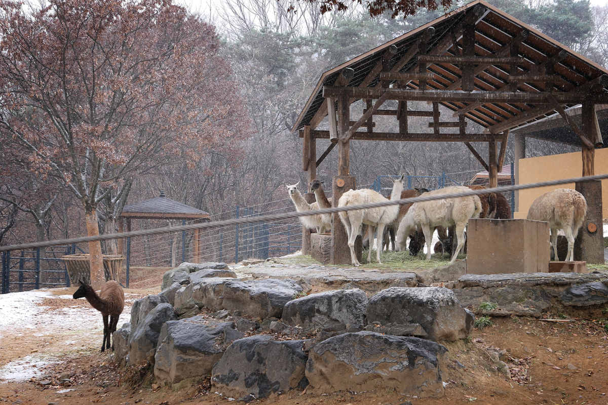 얘들은 남미의 고산지대에서 사는 녀석들이라 이정도 내리는 눈은 별거 아니겠죠.