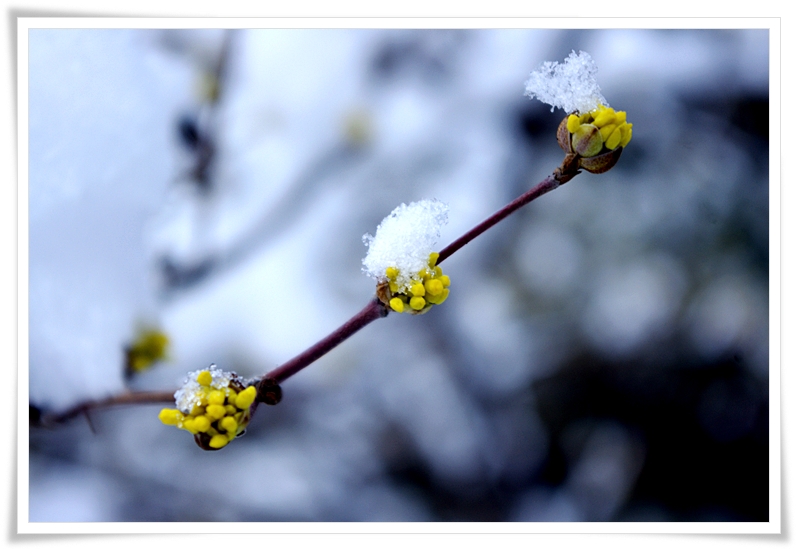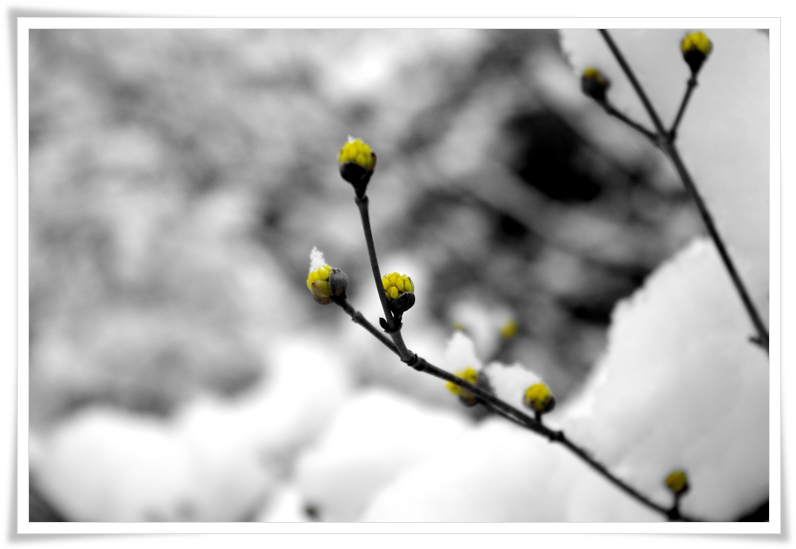 봄의 기운을 내더니 눈에 쌓여서 안쓰러 보이네요.