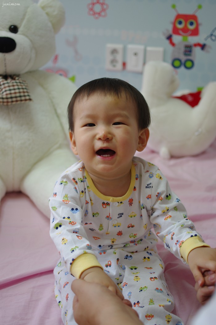 자동차 마니아 쥬니에게 선물한 자동차 내복.. 요거 입기 전부터 안입고 안고 있겠다고 난리쳐서 겨우 입혔는데... 어쩜 이리 좋아할까요 ㅎㅎ 너무 신이 나는 쥬니... "빠방 빠방 빠방 빠방~ " 하면서 온몸을 가르키는 우리집 꼬맹이..ㅋ 완전 귀여워요 ㅎㅎ