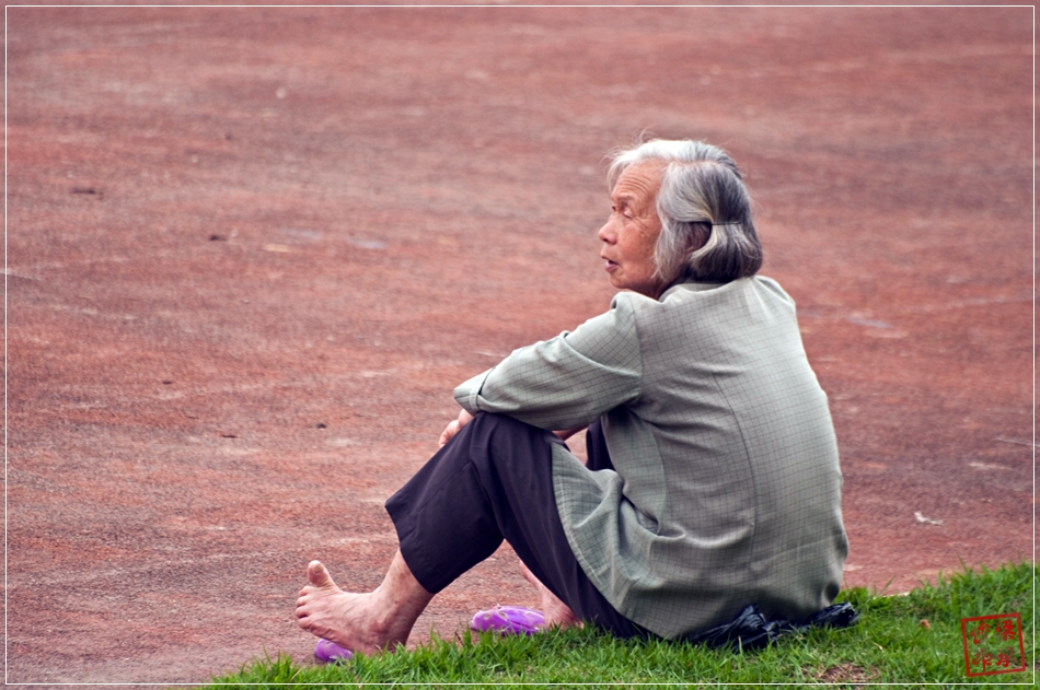 폐품(음료수 캔, PT병을 모으려고)을 기다리는 중국인 할머니..