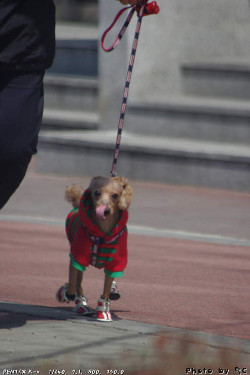 오랜만에 주인과 거리 산책을 나온 듯 즐거워서 어쩔 줄 모르는 행복해 보이는 강쥐네요.. ^^