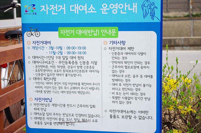 녹천교에 무료 자전거 대여소가 있더군요.