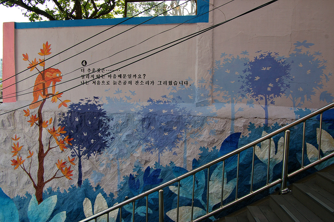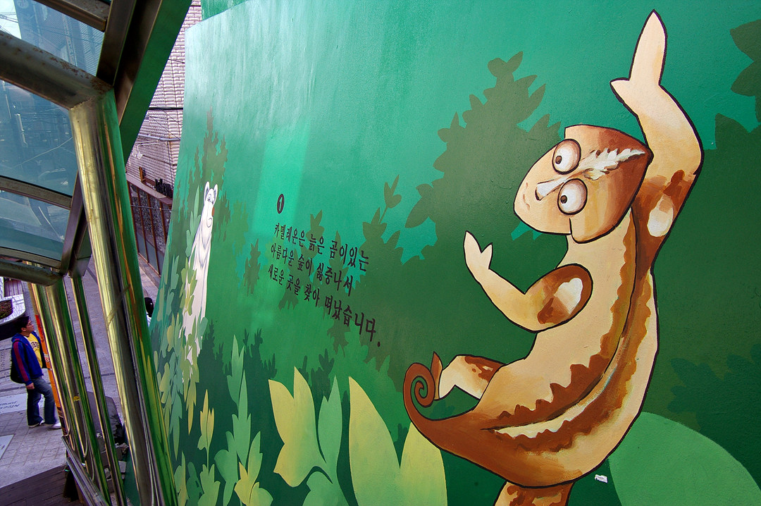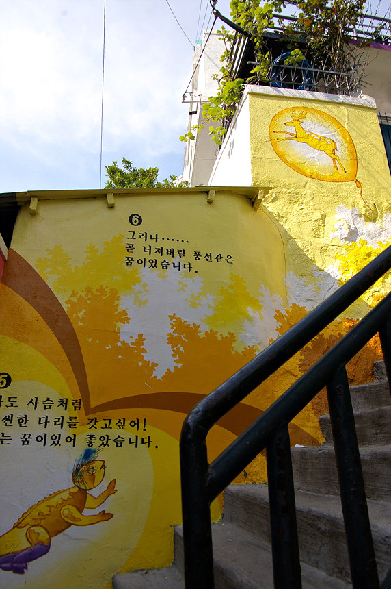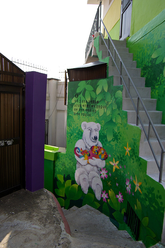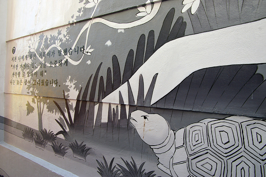 집사람과 다녀본 부산 중구 보수동 책방골목 담벼락 동화 일러스트