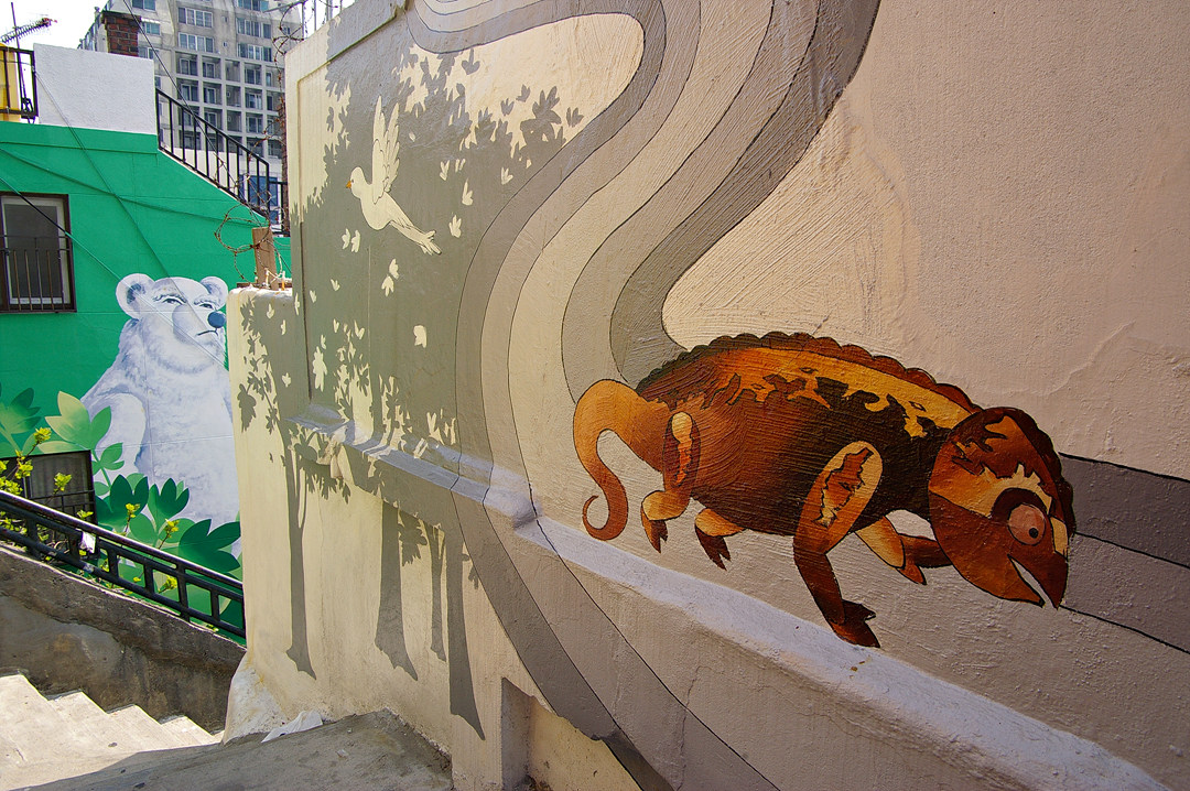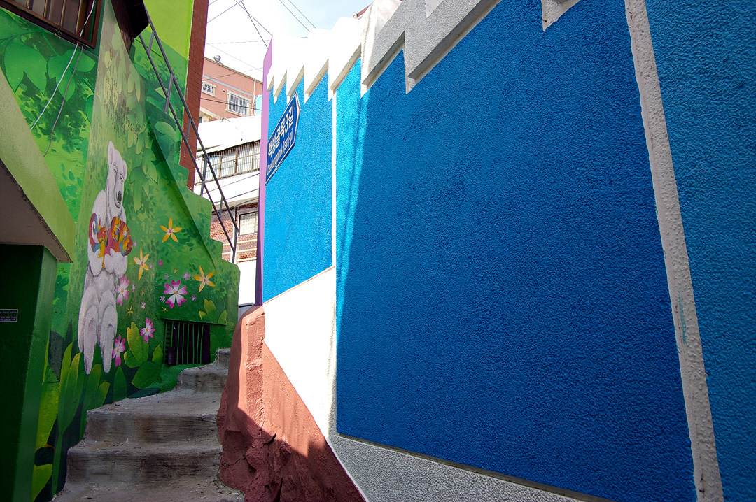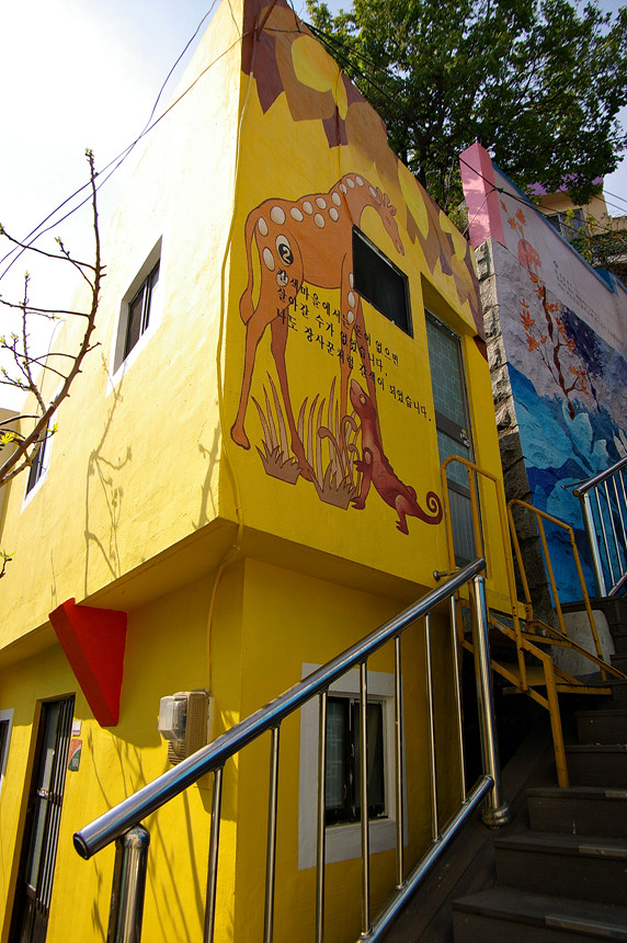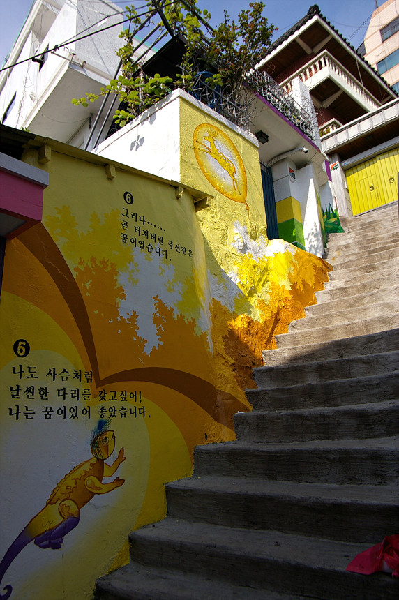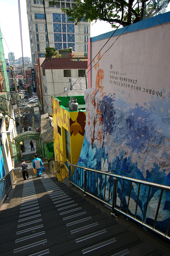 집사람과 다녀본 부산 중구 보수동 책방골목 담벼락 동화 일러스트