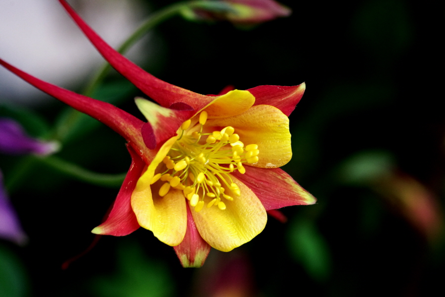 마당에 피어있는 매발톱중 유난히 색이 튀어보이는 녀석입니다