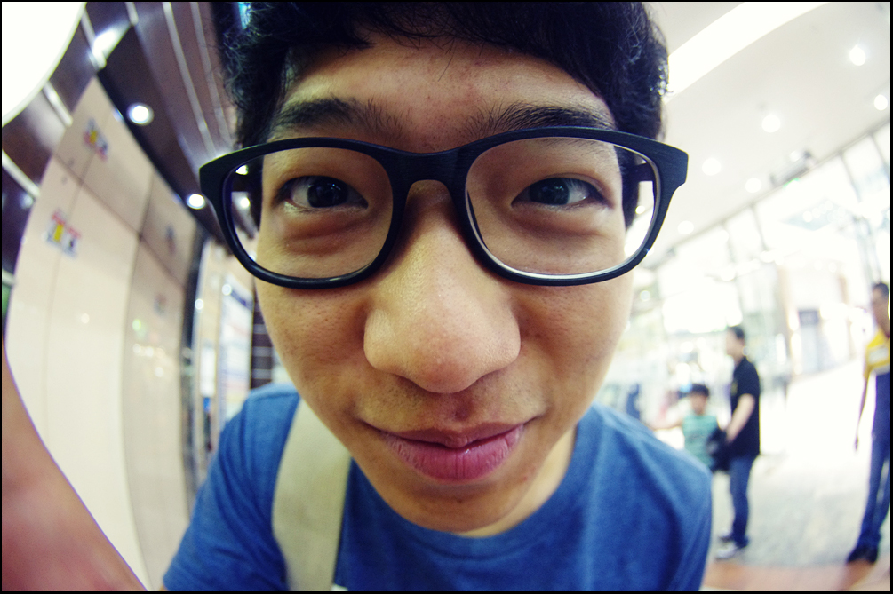 어안렌즈의 묘미는 뭐니뭐니해도 얼굴 클로즈업 샷이죠! 딱히 다른사람 망가뜨릴 수 없어서 본인 얼굴로 직접 연습중... 하하핫... 옆에서 사람들이 이상하게 보는듯한 -_-; 카메라와 대화하는 것도 아니고..키..키스?