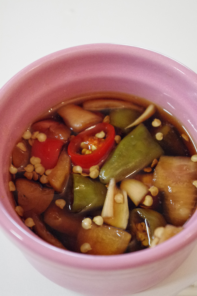 집에서 간단하게 해먹을 수 있는 스파게티와 고추,양파 피클이에요 :D