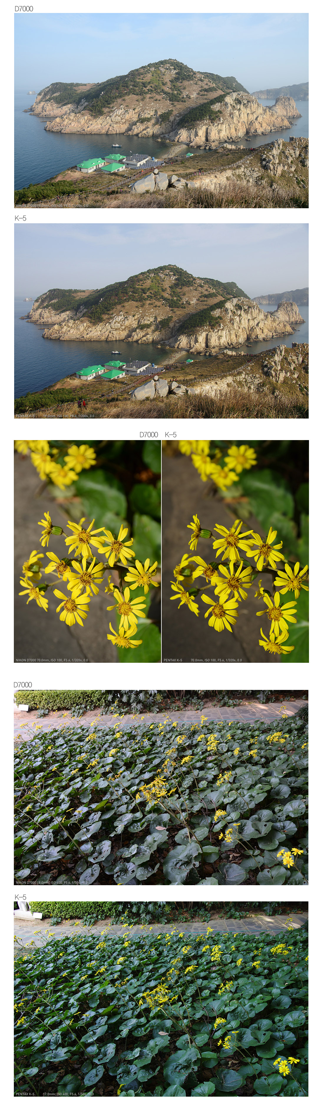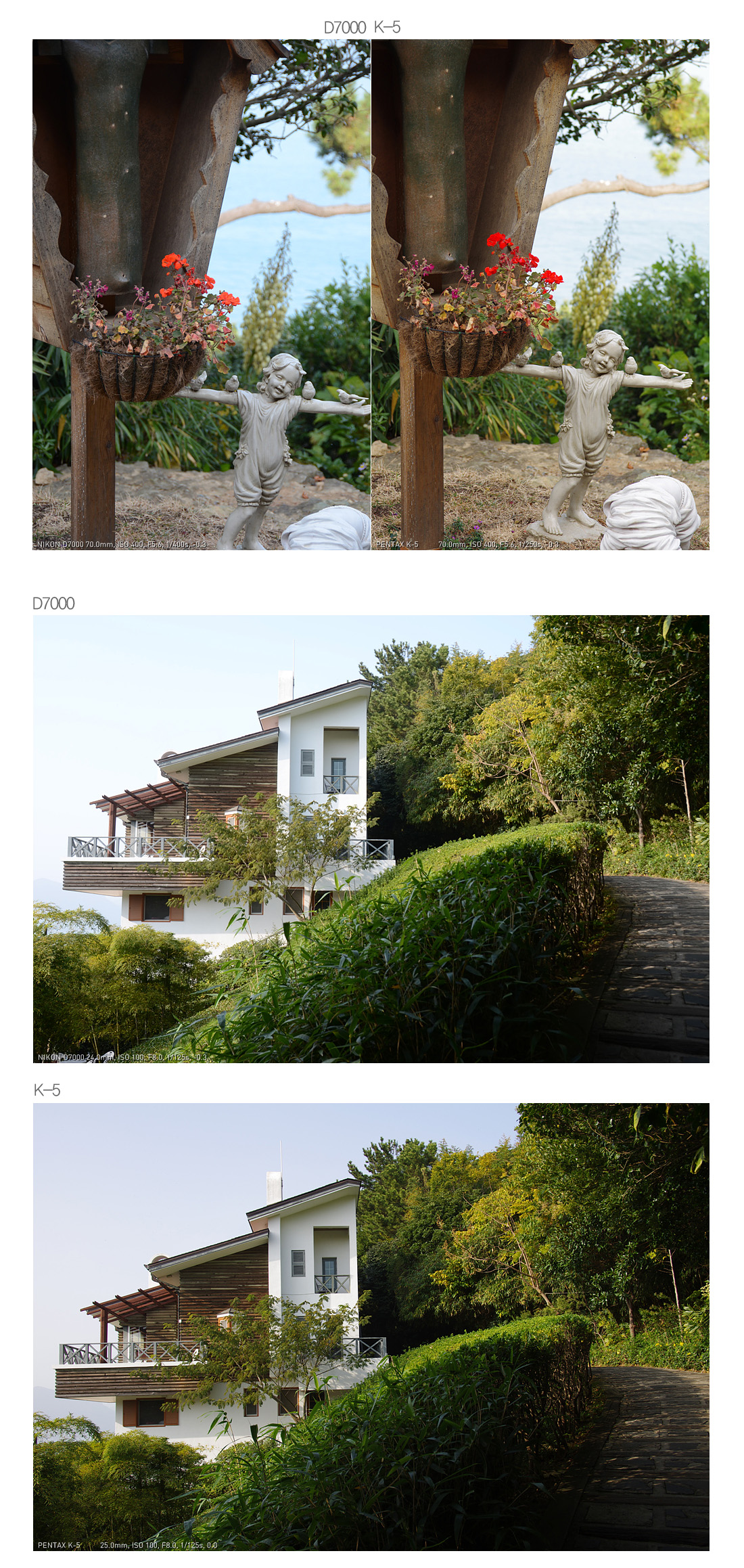 D7000은 다소 차가운 패턴과 약한 컨트라스트를 지닙니다. 대신 암부가 좀 더 밝습니다.