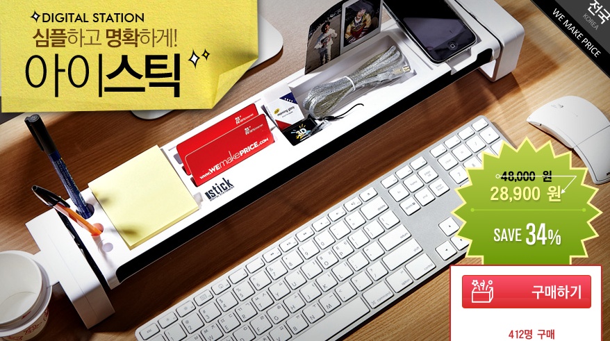위메프에 책상앞 정리대가 떴는데.. 무려 USB포트에 메모리 카드 리더기능, 핸드폰 거치 까지 된다고 하는군요. 이건 살수 밖에 없잖아 ㅠ_- 오늘 자게에 이어 위메프 글 2연타인데 저 위메프랑 아무 관련 없어용 ^^; 지금 물건 하나 3주째 안와서 위메프에 뿔난상태인데(택배사 사고) 그래도 지름은 지름이라는.. www.wemakeprice.com/deal/main