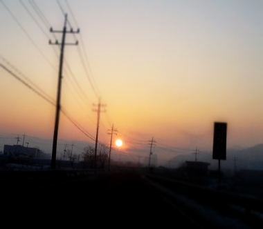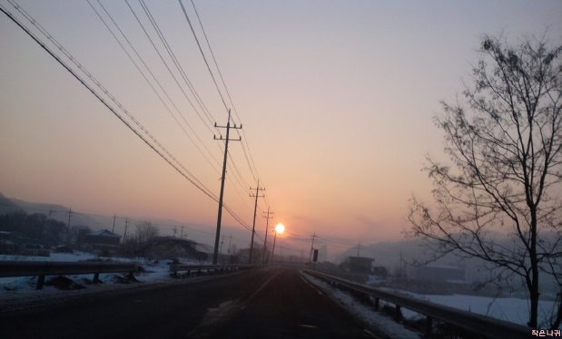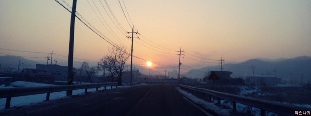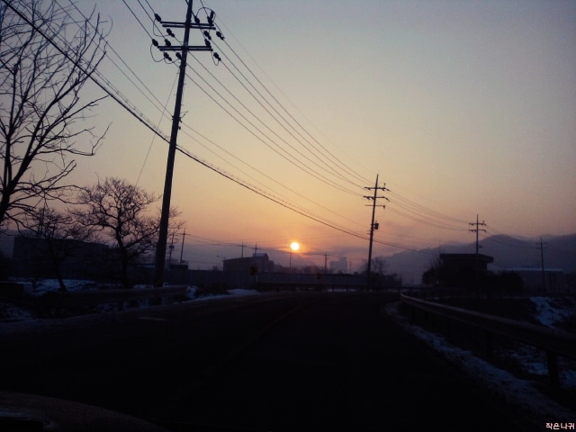 출근길에서 볼 수 있는 일출...눈으로 보면 매우 아름답내요.