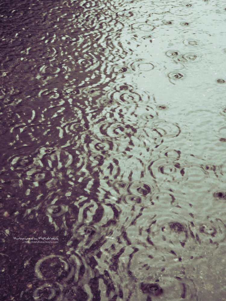 바짝 마른 도시의 땅에 비가 그린 수많은 동그라미.