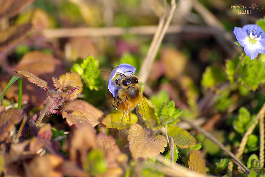벌이 꽃이 기울어지도록 매달려서 허겁지겁 꿀을 빨아요. 저 작은 꽃에 뭐 먹을게 있다구..ㅎ