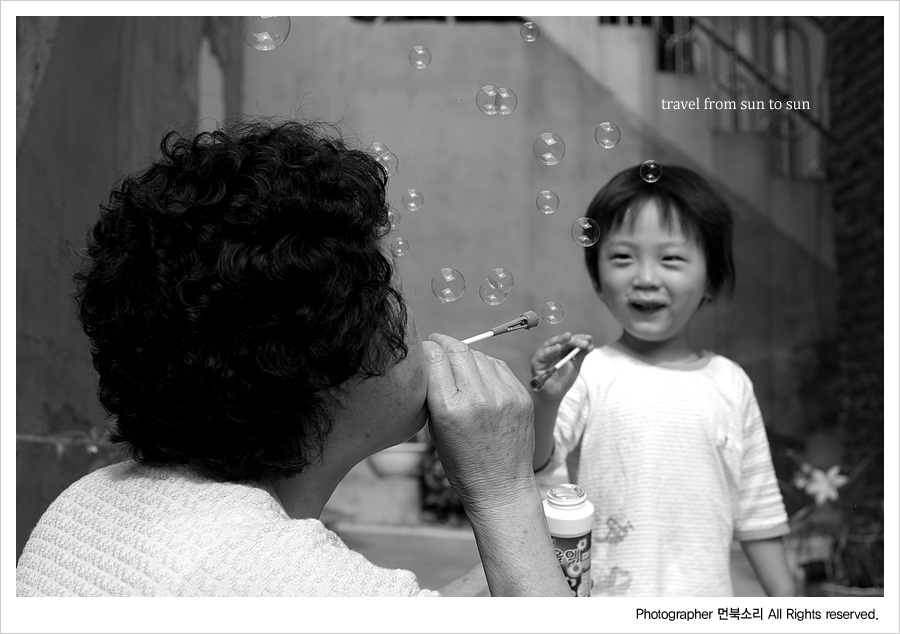 할머니와 손자의 즐거운 한때.