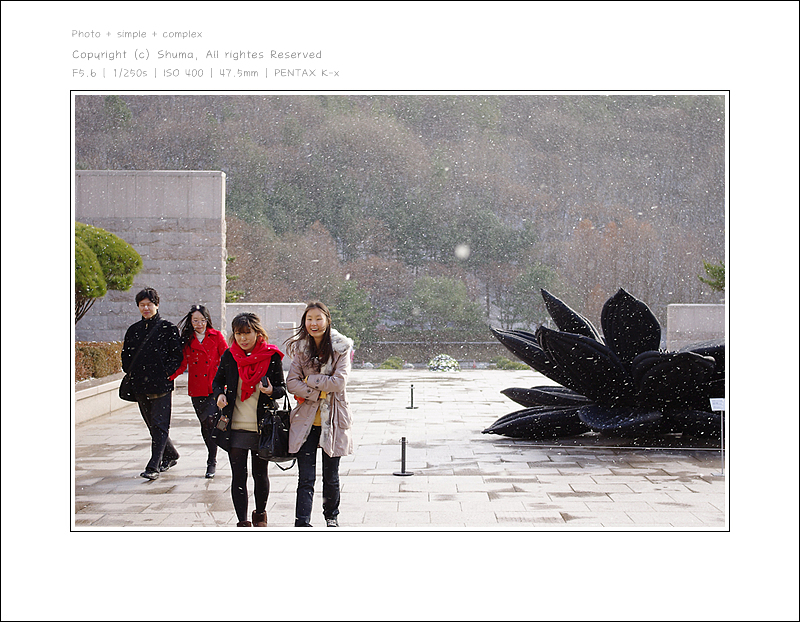 지하철에서 나오니... k-x 바디색과 같은 눈이 폴폴~~ 소복소복~ 내리고 있더군요