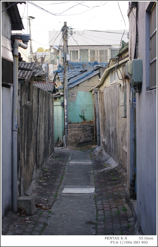 사진 중앙의 에메럴드 그린 색상의 담벽을 보시면
