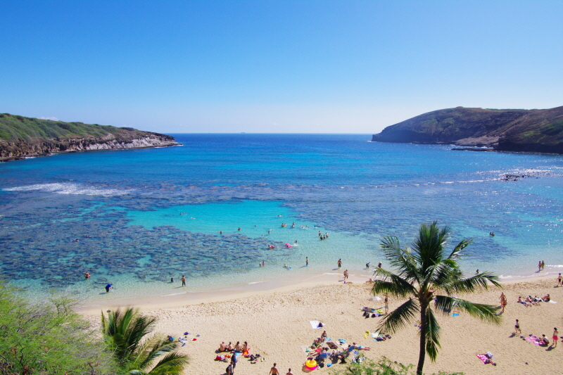 하와이에서 유일하게 스노쿨링을 할 수 있는 지역인 하나우마베이입니다.