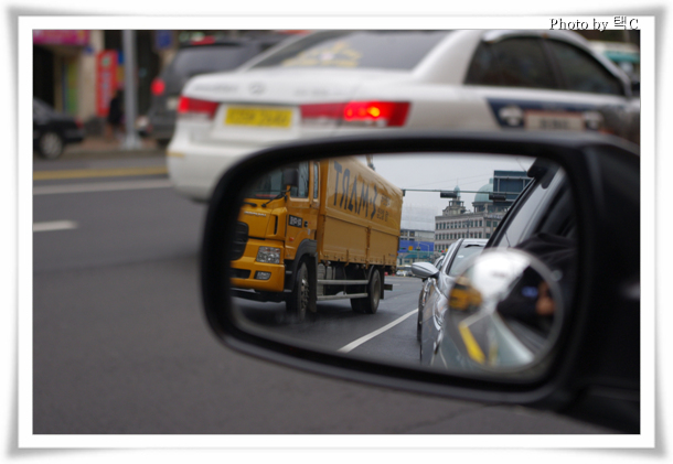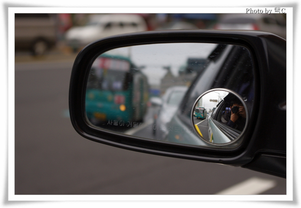 사이드미러와 그 안의 작은 볼록거울 속의 풍경이 초점을 맞추기에 따라서 선명하거나 흐리게 찍히네요..!(?)^^