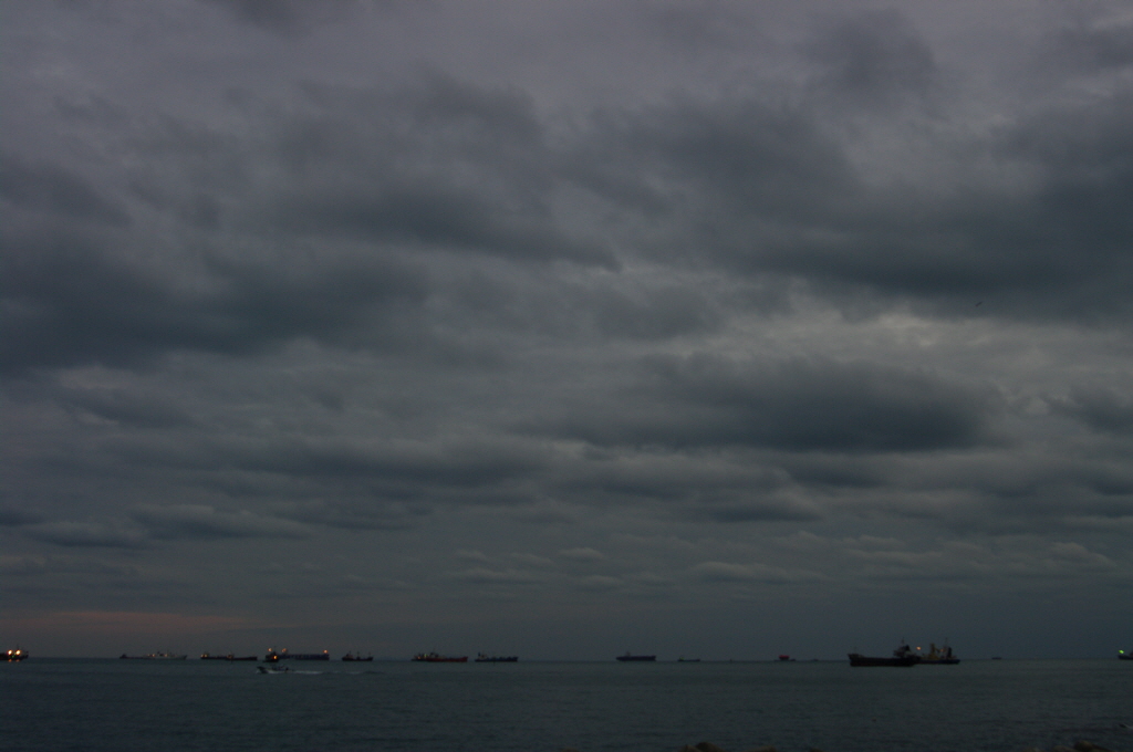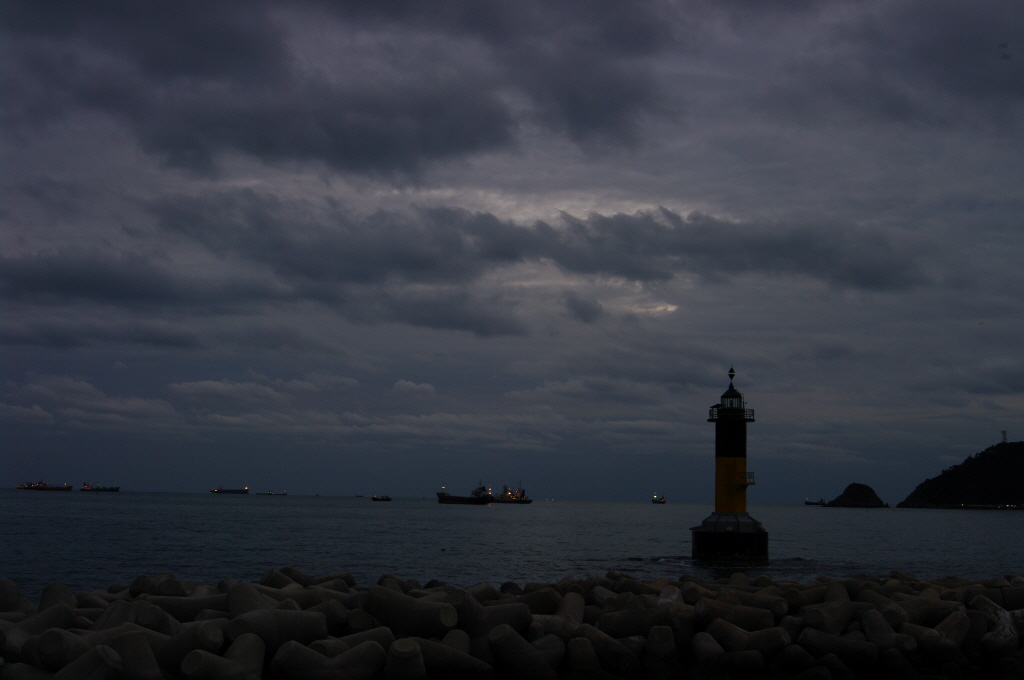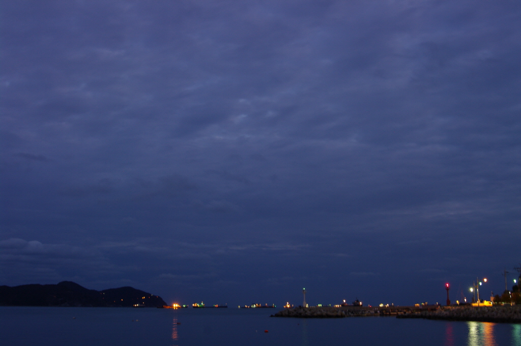 어두워지는 하늘 만큼이나 바다색도 깊어지는군요..