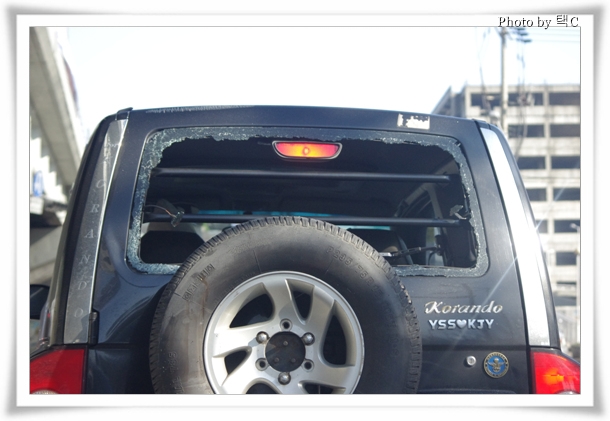 운전중 신호대기에 걸려 앞 차를 보니 저런 불상사를..!! ㅋ~ 운전하시는 분 좀 시원하셨을 듯..(?) ㅠㅠ
