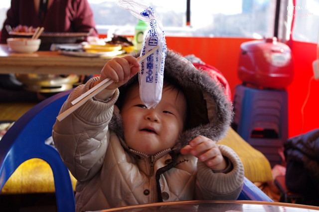 요녀석 부쩍 젓가락질을 흉내내더니만..
