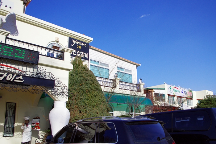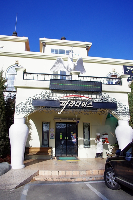 저 곳은 '파라다이스' 란 상호의 레스토랑, 펜션, 한식당, 세미나 룸 등등 복합 시설인데, 숙박료는 상대적으로 저렴하나,