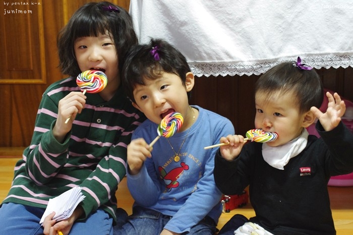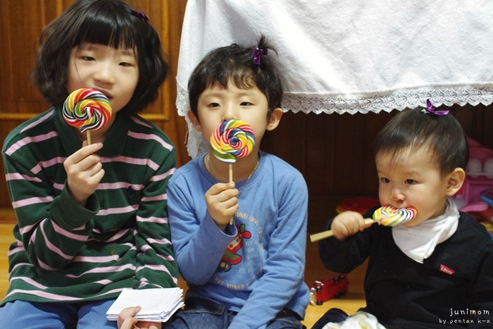 개구진 녀석들에게 제가 선물한 롤리팝 사탕..^^