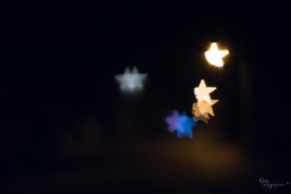 동그란 보케는 어찌어찌 찍겠는데.. 여성분들에게 사진을 보여주려고 하다보니 별보케와 하트보케필터를 자작해서 찍어봤습니다. 뭔가 이지러지고, 짤리고 생각대로 잘 안됩니다. 별과 하트모양을 각 1Cm정도 크기로 잘라서 만들었는데 자꾸 이지러지네요ㅠㅠ