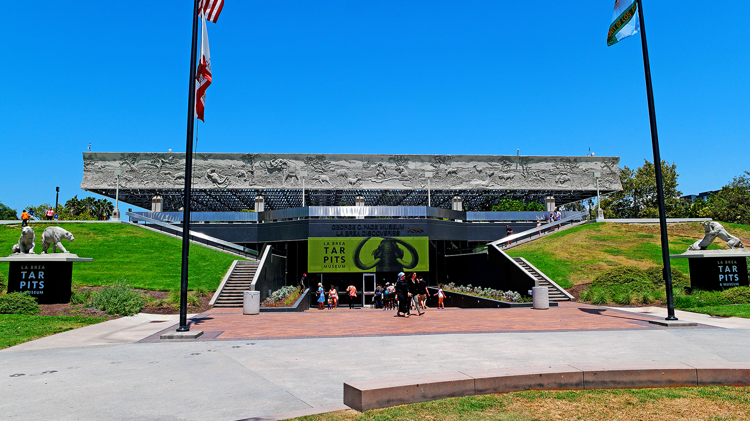 이곳에 빙하기 때 부터 존재하던 고대 생물들이 이 끈적이는 타르 에 빠져서 오랜세월 동안 지난후 최근에 이곳에서 동물들 의 뼈가 무더기로 추출 되고있습니다. 그중에는 고대 맘모스 도 있습니다.