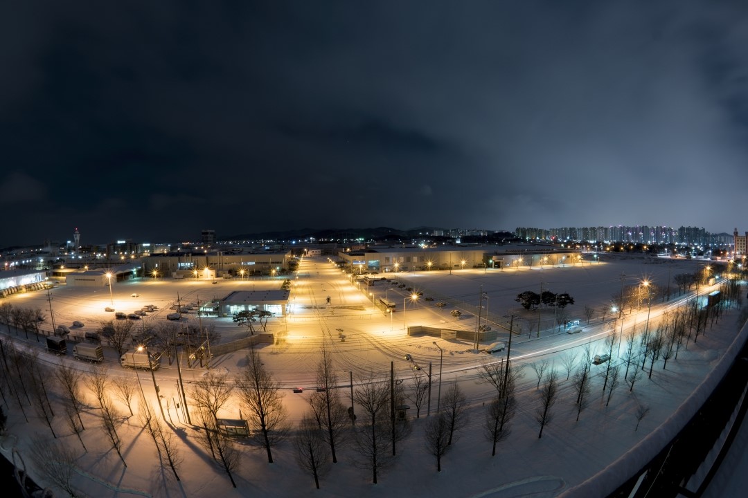 광주는 눈이 한 30cm는 온듯하네요 ㅎㅎ 오늘도 줄기차게 눈이오는가운데 밤에 옥상에서 잠깐 눈 그쳤을때 야경 한번 담아봤습니다 ㅎㅎ 이불밖은 위험하다는게 실감되는 날씨라 후다닥 한장만 건지고 들어왔네요 ㅎㅎ 요즘은 어안렌즈에 푹빠져 삽니당 ㅎㅎ 렌즈 왜곡 보정도 해보고해야하는데 어떻게하는지 잘 모르겠네요 ㅎㅎ 이쁘게 봐주세요!