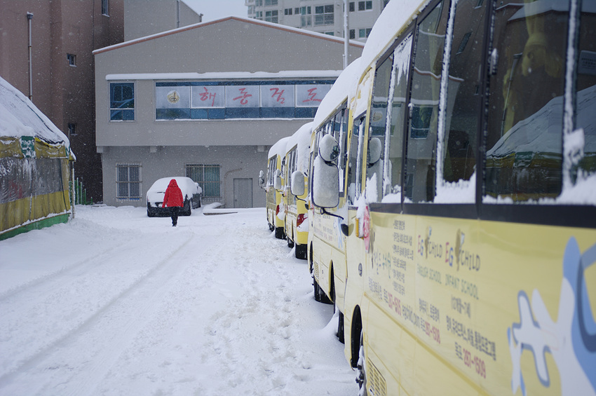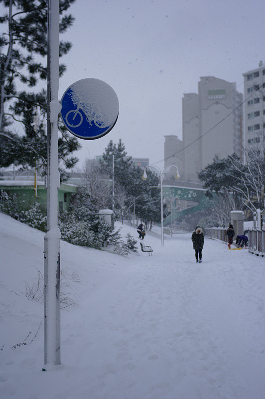 굴삭기로 오르막길 긁는 소리 들려도 녹는 속도보다 내리는 속도가 더 빨라서 점점 쌓여가네요.