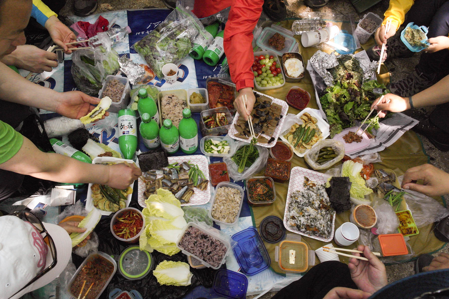 배낭에서 나온 점심 밥상