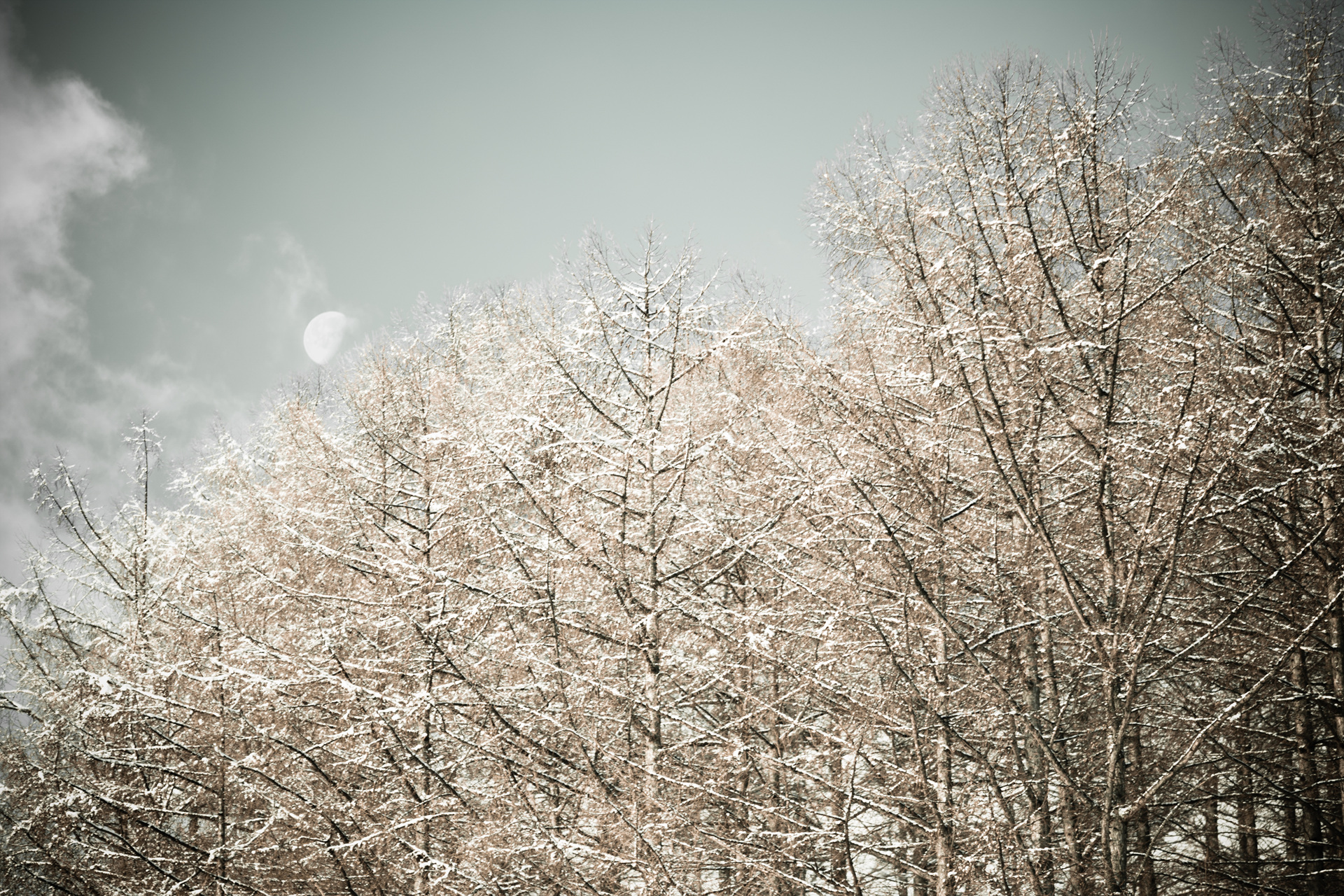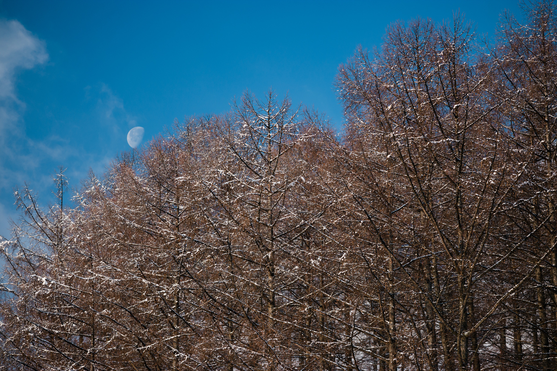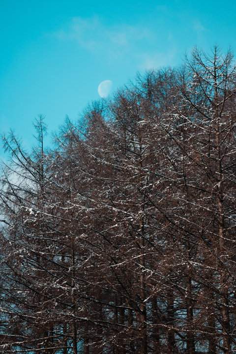 노르웨이의 숲은 아니구요 하이원 갔을때 운좋게 눈오는 날이어서 아침 일찍 혼자 돌아 다니다가 아직 자기 자리를 찾아가지 못한 달과 조화를 이룬 숲 사진을 담아 보았습니다