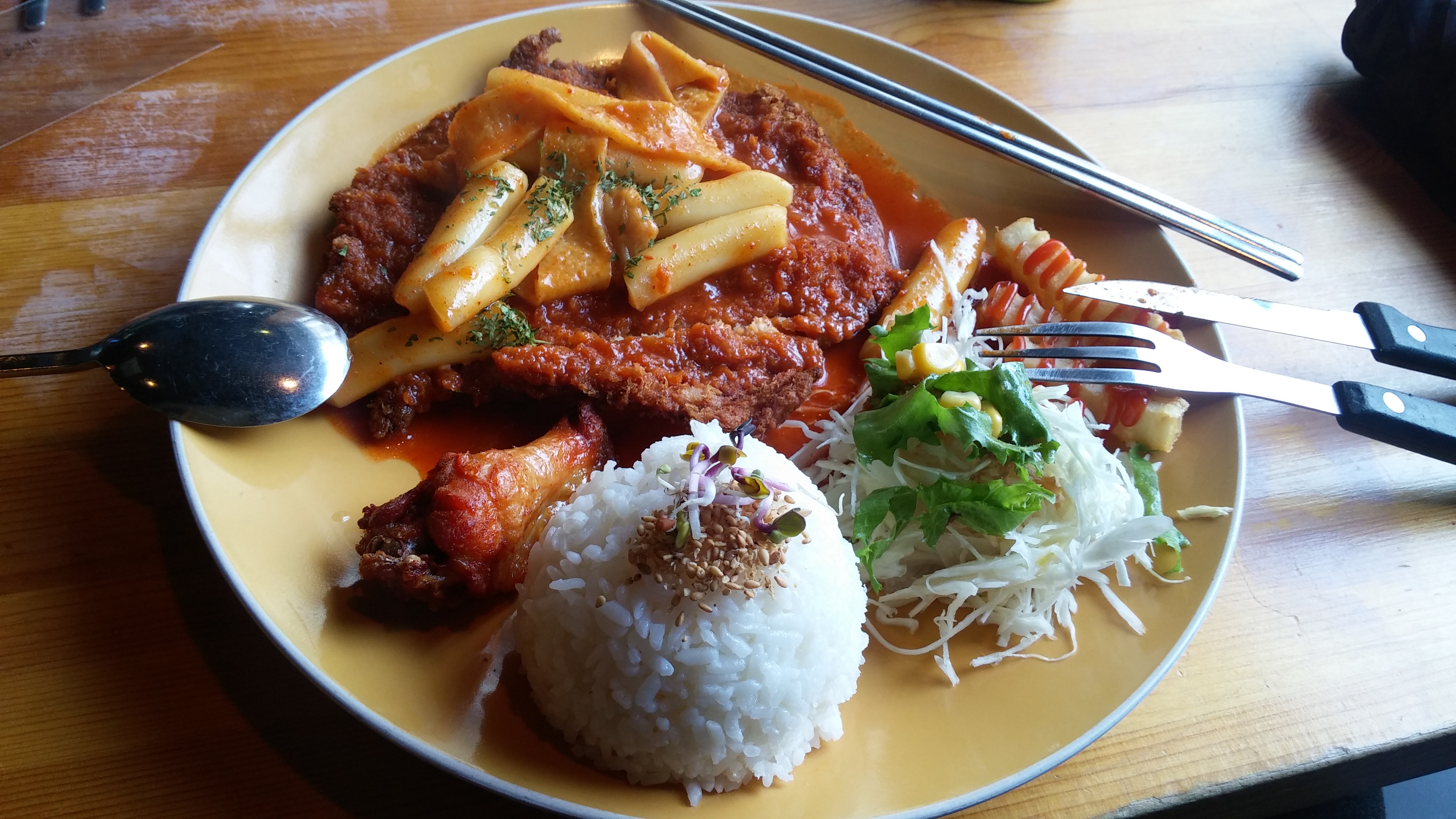 간만에 경성대앞 빨봉분식 돈까스떡볶이 ㅎㅎ 맛있네요 근데 아저씨 혼자 들어와서 여대생 사이 에서 먹으려니 쑥스럽네요 음악이랑 옆에 아가씨들 시끄러버 죽겄네요 ㅋ