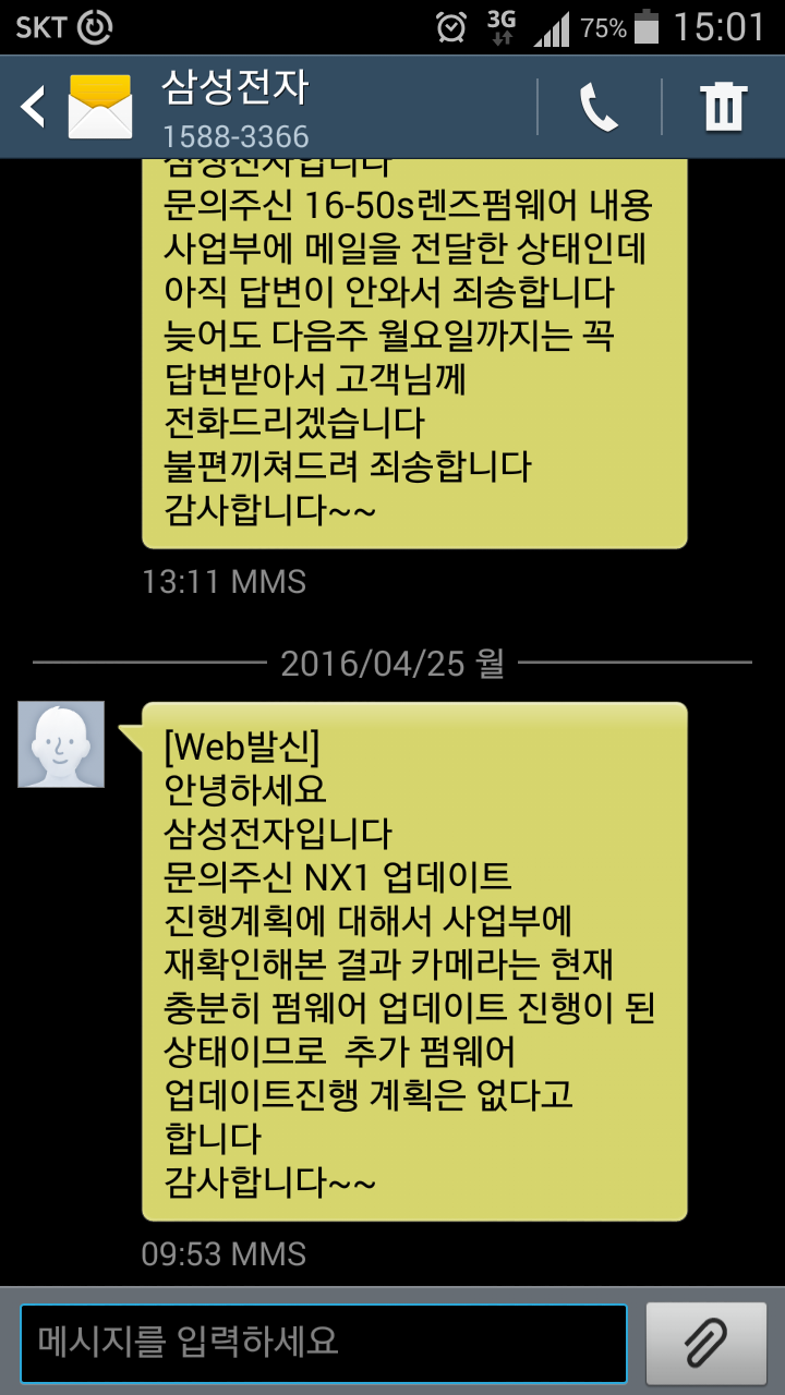 제가 얼마전에 카메라상담사분께 NX1의 지속적인 펌웨어를 해준다고 사업부에서 전해들었다가 오늘 수정된 답변을 받았습니다.