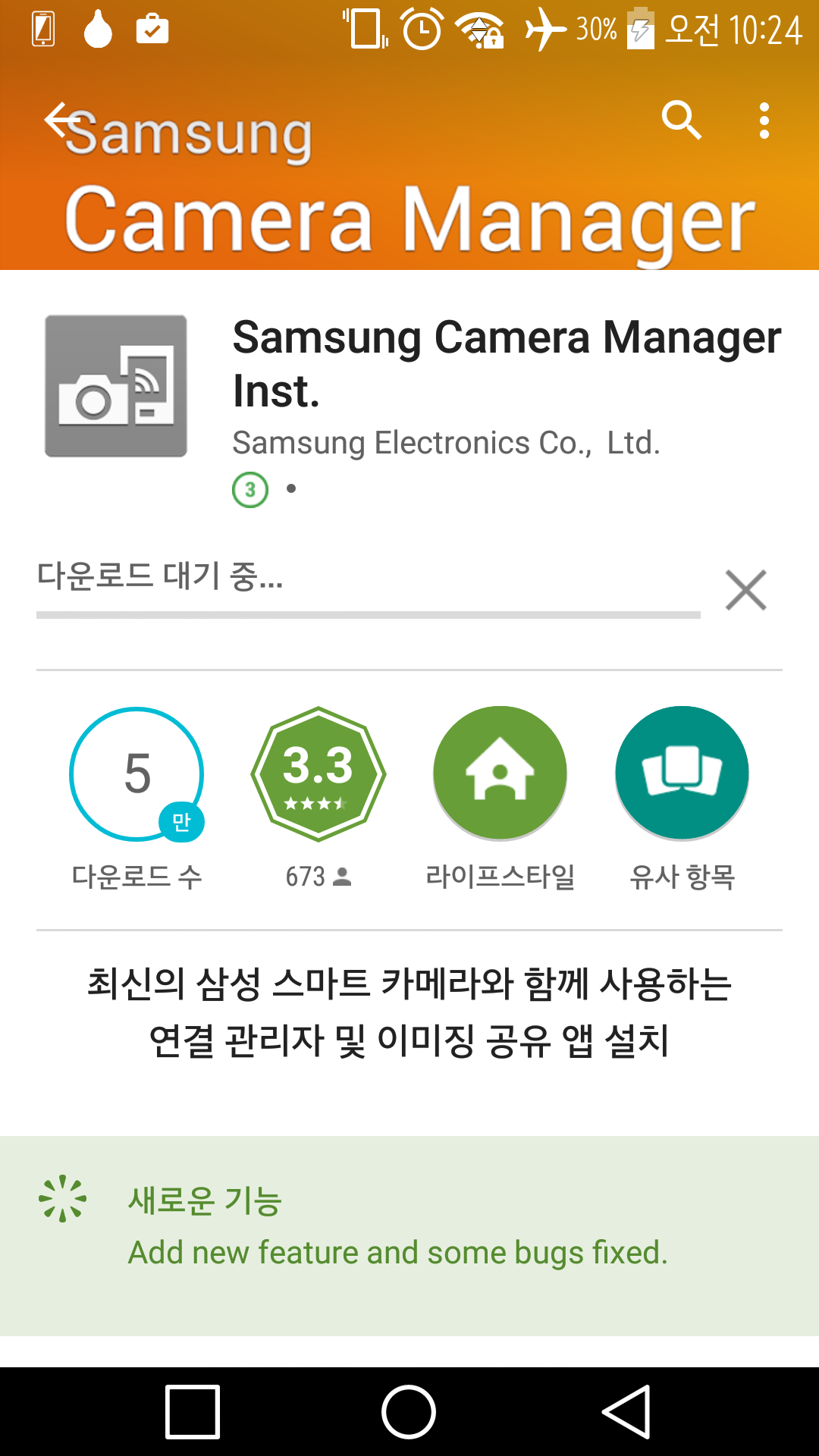 기존에는 Samsung Camera Manager Inst. 앱 내부에 Accessory Service 앱과 Samsung Camera Manger 앱 각 두가지 설치파일 (apk) 을 포함하고 있다가