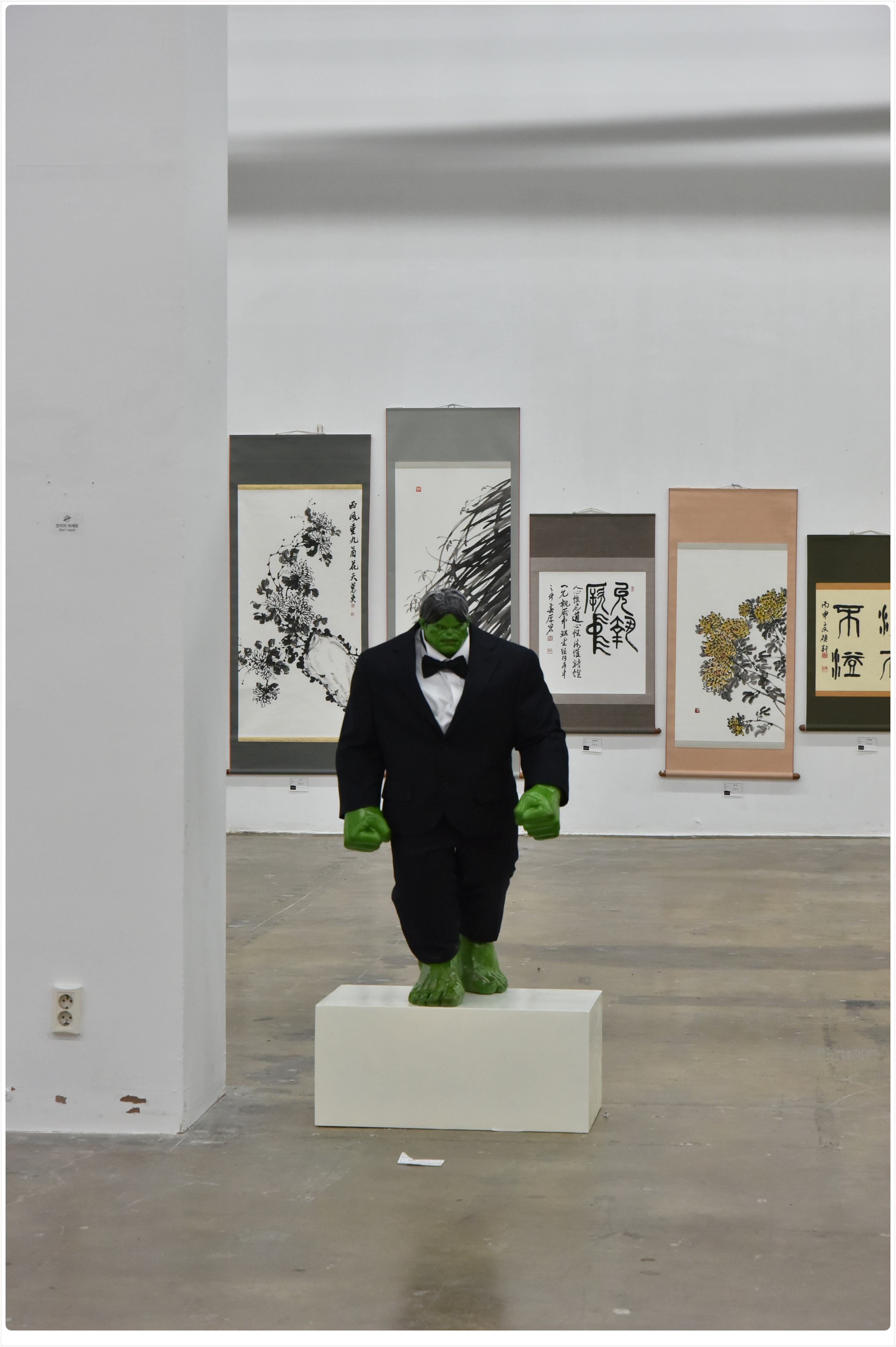 며칠전 광주 비엔날레관 다녀왔는데 거기서 무등미술전이라고 입상작들 전시했더라구요 사진과 미술품이 많아서 감상이 꽤 즐거웠습니다 그런데 수많은 동양화 들중에 이 헐크는 과연 주제가 무엇일까요? 맞혀보세요 ㅎㅎ 힌트는 '이세상에서 제일 강하지만 어찌보면 한없이 약한' 입니다
