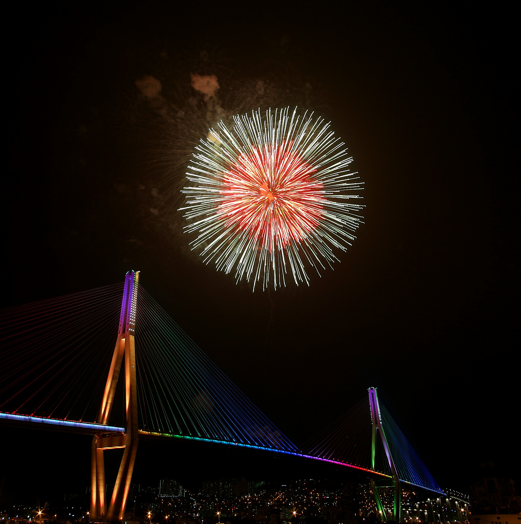 마지막은 불꽃놀이 후 연기 드리워진 부산항대교^^