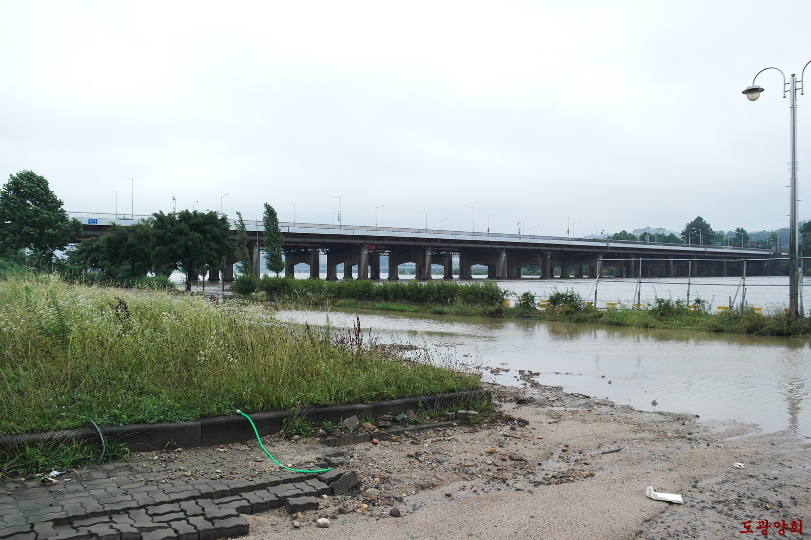 강변북로 달리는 도중 한강이 얼마나 잠겼나 궁금해서 내려서 찰칵~