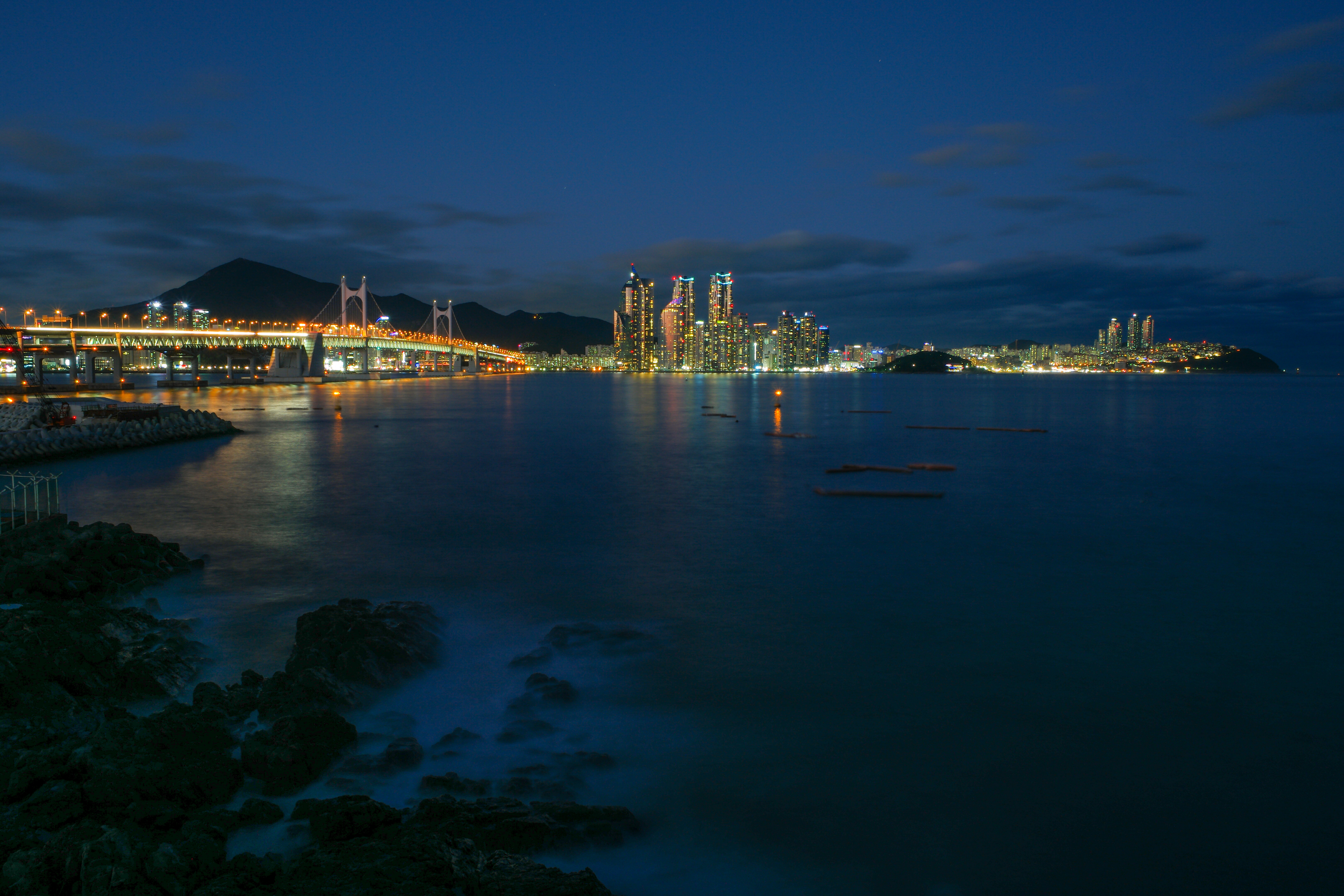 여긴 정확히는 이기대 끝자락 용호부두 또는 용호부두장치장 이라 불리는 곳이죠 전국에서도 태풍있는날 주간 장노출명소죠 ㅎ 태풍 끝난 저녁 하늘도 넘 깨끗하고 구름도 이뻐 드라마틱한 하늘을 기대하며 갔는데 먹구름 잔뜩이네요 ㅠ ㅎㅎ 항상 좋을수만 없으니 . . . nx20mm , 삼양12mm